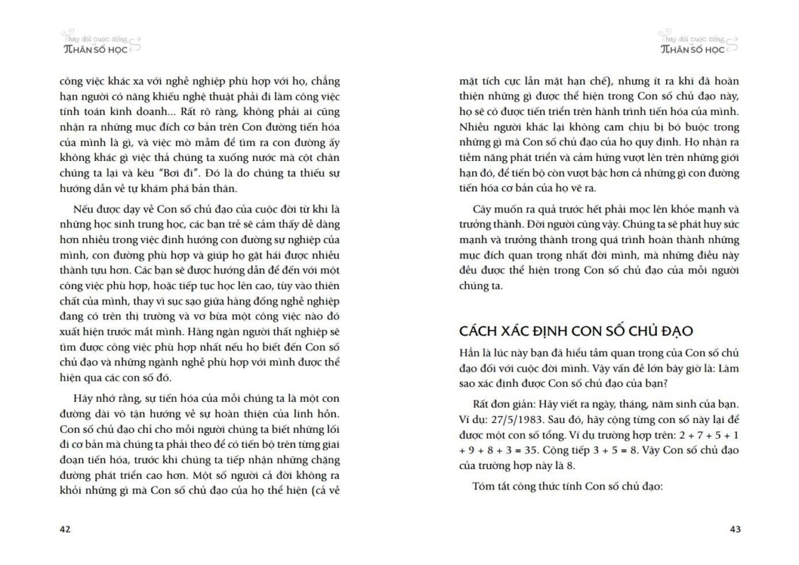 Thay Đổi Cuộc Sống Với Nhân Số Học mang đến góc nhìn sâu sắc về cách những con số trong ngày sinh ảnh hưởng đến tính cách, tư duy và vận trình cuộc đời mỗi người. Cuốn sách giúp bạn khám phá bản thân một cách khoa học, từ điểm mạnh tiềm ẩn đến những giới hạn cần vượt qua để trưởng thành. Thông qua các chỉ số nhân số học quan trọng, người đọc có thể định hướng rõ ràng cho học tập, công việc và các mối quan hệ xung quanh. Nội dung được trình bày sinh động, dễ hiểu và có tính ứng dụng cao trong đời sống hằng ngày. Không chỉ dừng lại ở việc dự đoán, sách còn hướng dẫn cách thay đổi tư duy để thu hút cơ hội tích cực.
