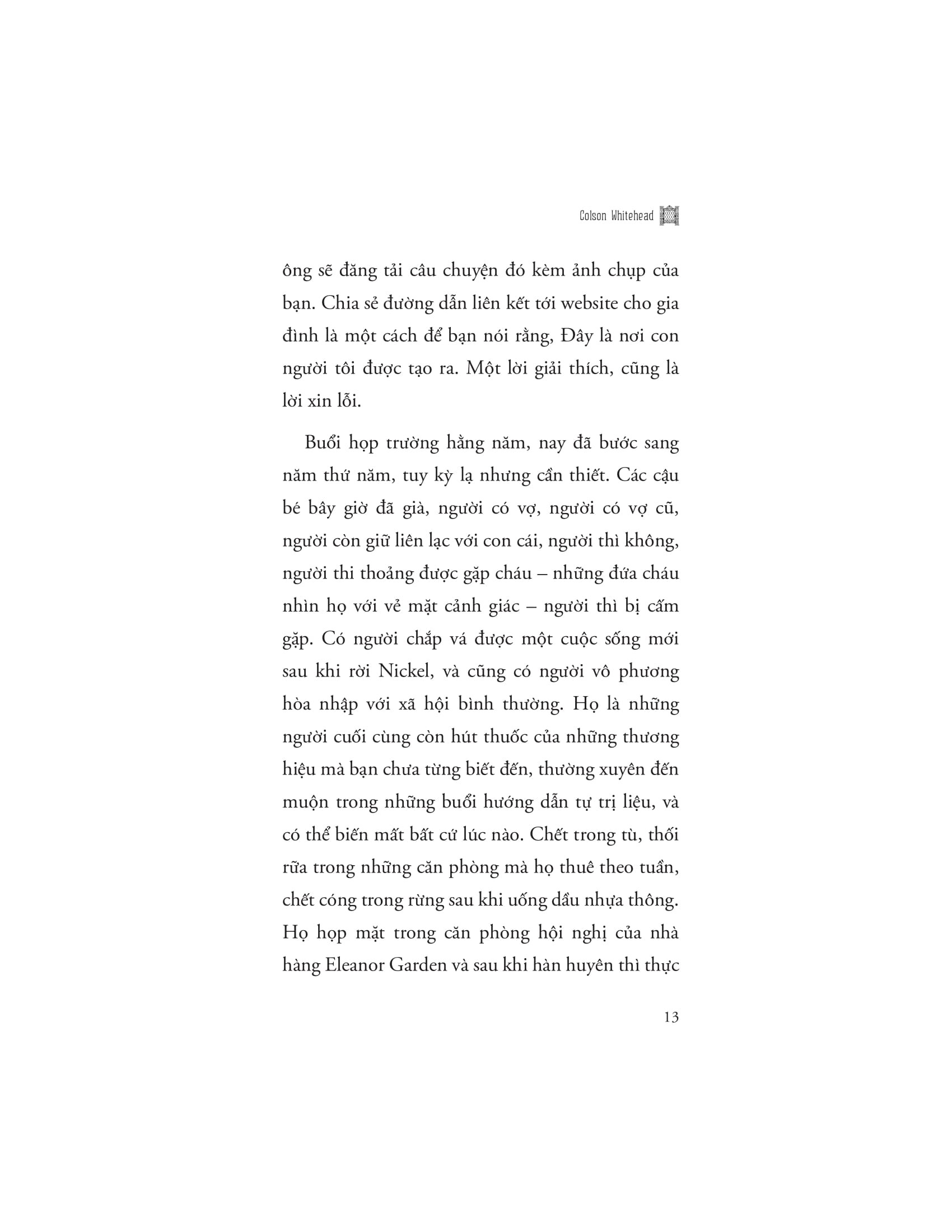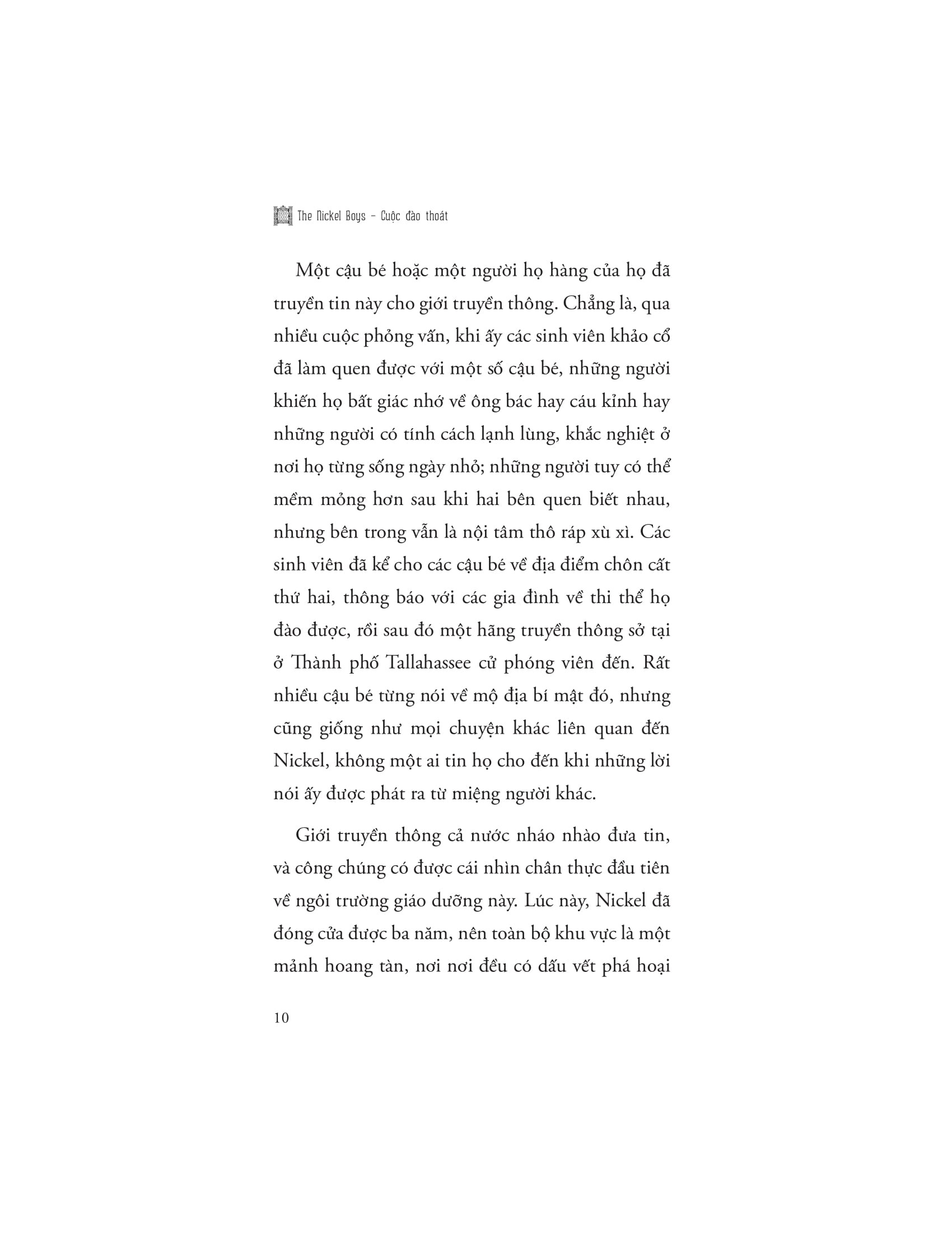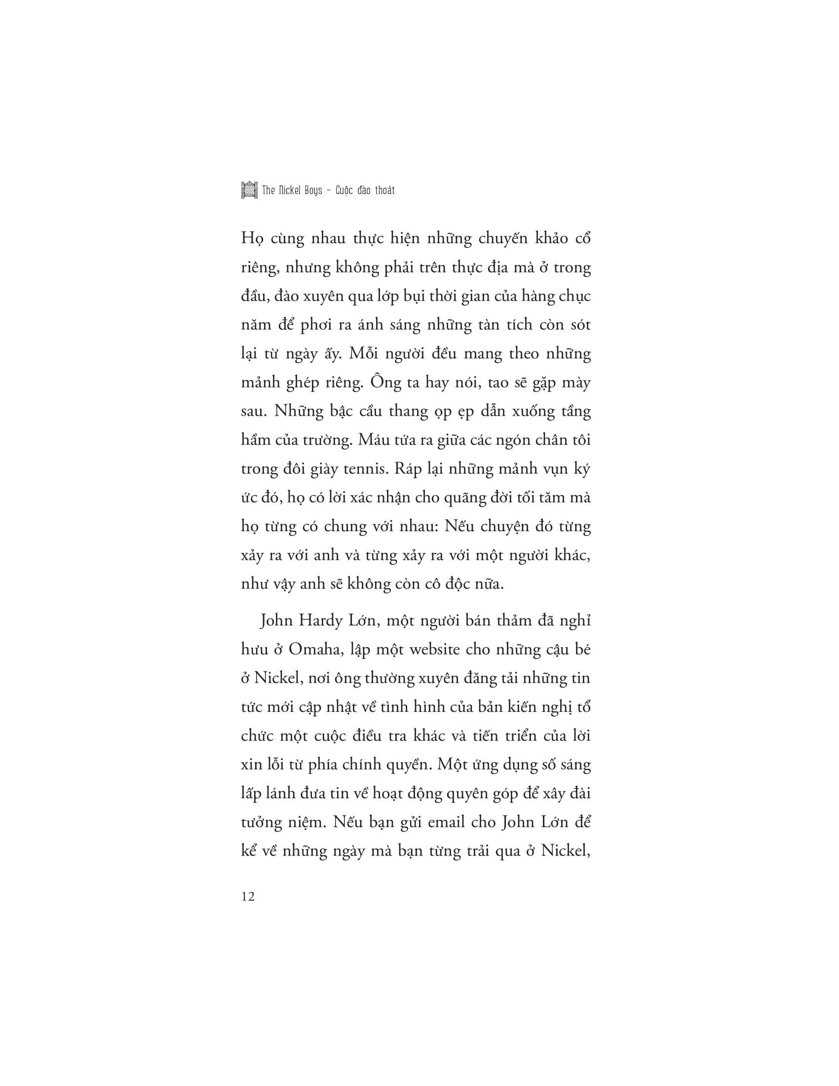 Sự nghiệp văn chương đồ sộ của Whitehead càng làm nổi bật tài năng kể chuyện của ông trong The Nickel Boys. Lối hành văn sắc sảo, giàu chi tiết và giàu tính nhân văn giúp độc giả dễ dàng đồng cảm với nhân vật, cảm nhận từng nhịp thở, từng nỗi niềm của tuổi trẻ bị tổn thương. Cuốn sách nhắc nhở rằng, ngay cả trong những hoàn cảnh đen tối nhất, hy vọng và tinh thần đấu tranh vẫn tồn tại, dẫn dắt con người vượt qua đau khổ, tìm về công lý và sự bình yên.