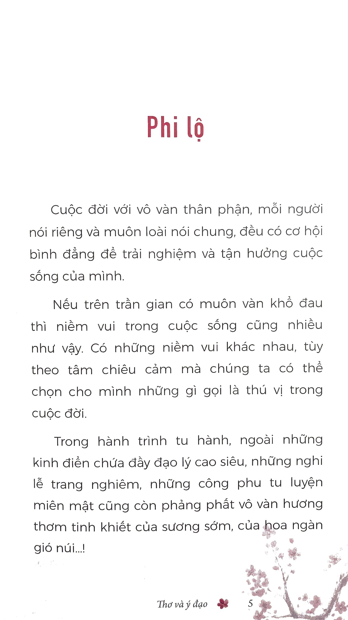 Cuốn sách Thơ Và Ý Đạo chính là người bạn đồng hành lý tưởng cho những ai đang tìm kiếm sự bình yên và chiều sâu tâm hồn. Hãy mở lòng để thoát khỏi vòng xoáy của thế tục, để từng câu thơ dẫn lối bạn đến sự tự hiểu và khám phá vẻ đẹp đa sắc của cuộc sống.