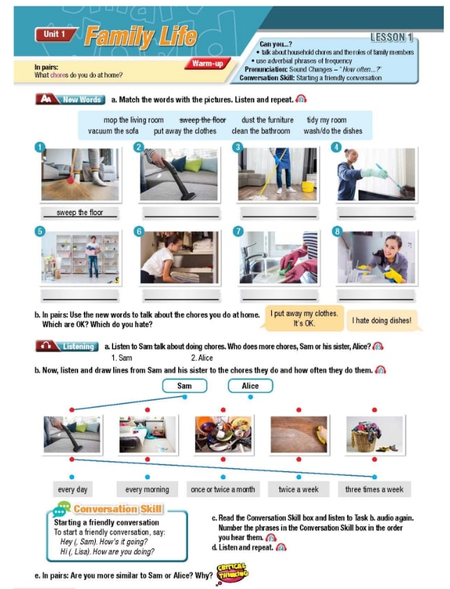 Unit 1 không chỉ giúp học sinh làm quen với ngôn ngữ mà còn rèn luyện khả năng nghe hiểu thông qua các đoạn hội thoại, câu hỏi trắc nghiệm và bài tập luyện nghe. Bên cạnh đó, các phần từ vựng và ngữ pháp được trình bày rõ ràng, kèm theo ví dụ minh họa sinh động, giúp học sinh dễ dàng ghi nhớ và áp dụng vào thực hành hàng ngày.