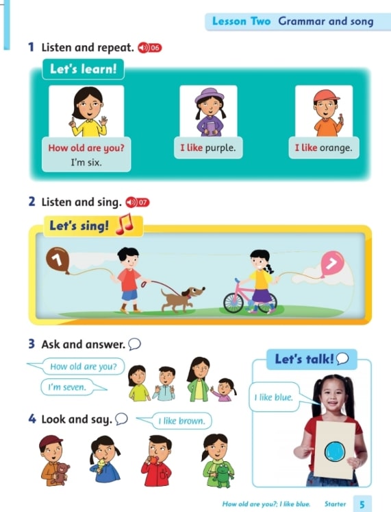 Từ việc giới thiệu bản thân, mô tả đồ vật, đến giao tiếp trong lớp học hay trò chuyện về gia đình – tất cả đều được trình bày bằng hình minh họa sinh động, câu mẫu ngắn gọn và hoạt động tương tác vui nhộn, hỗ trợ tối đa khả năng ghi nhớ của trẻ. Điểm nổi bật của bộ sách là cấu trúc học theo từng bước, giúp trẻ tiếp thu kiến thức một cách vững chắc.
