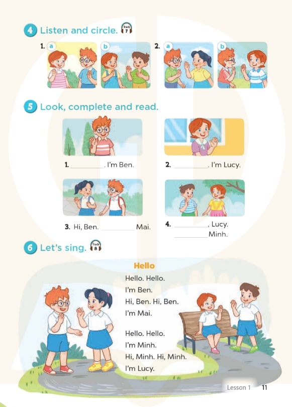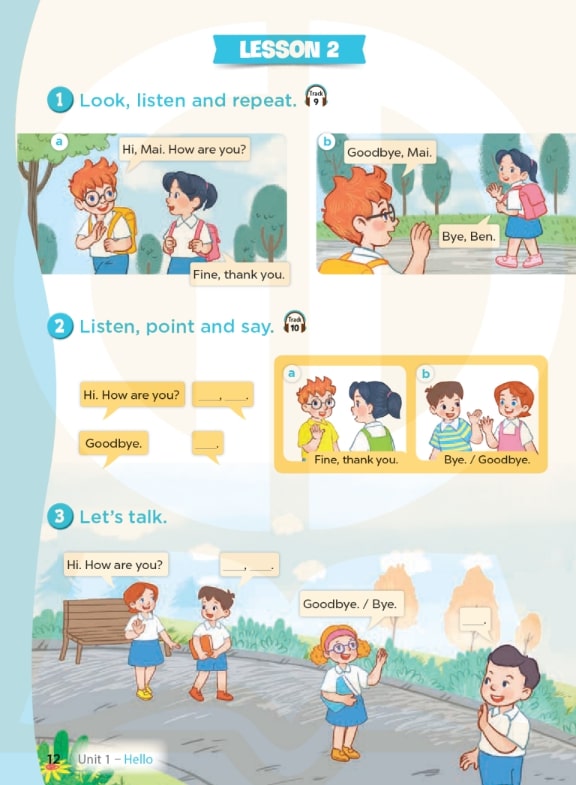 Mỗi bài học kết hợp hình ảnh minh họa, đoạn hội thoại mẫu, từ vựng mới và bài tập luyện tập, giúp học sinh ghi nhớ kiến thức hiệu quả và ứng dụng thực tế.