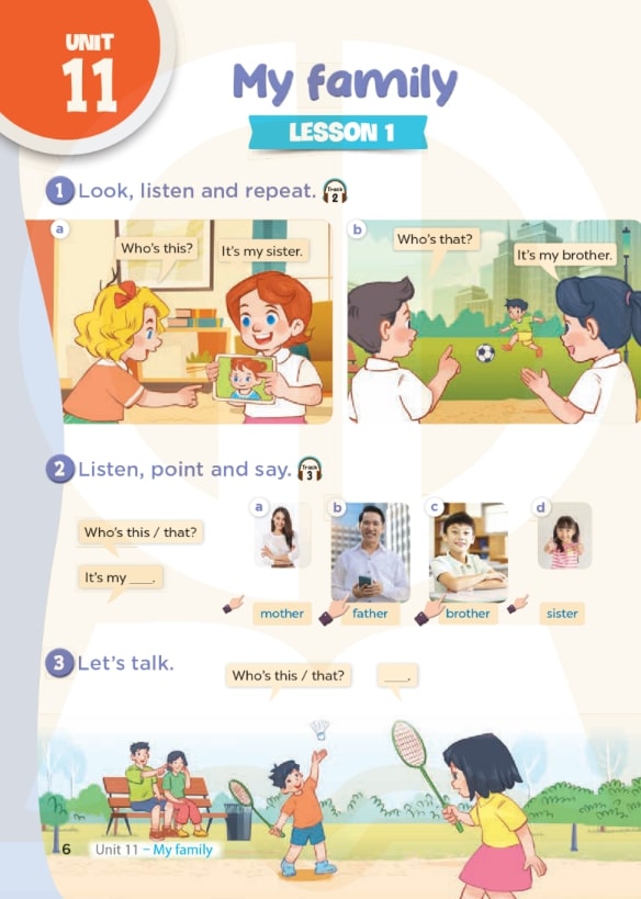Chủ đề gia đình và bạn bè: Trẻ học cách giới thiệu bản thân, mô tả gia đình, trò chuyện về sở thích.