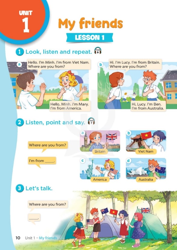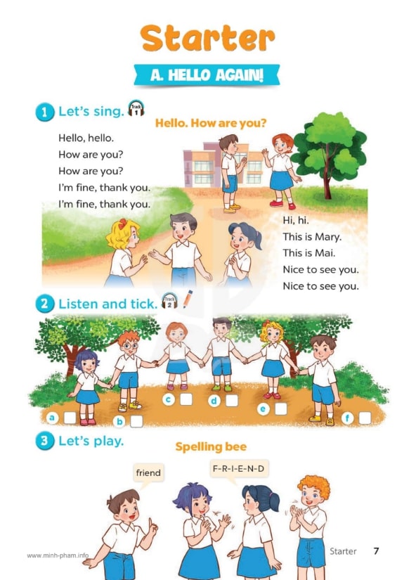 Đây là phần khởi động để học sinh làm quen với chủ đề mới. Qua tranh minh họa sống động và các câu hỏi đơn giản, trẻ có thể kết nối kiến thức cũ và chuẩn bị tâm thế học bài mới.