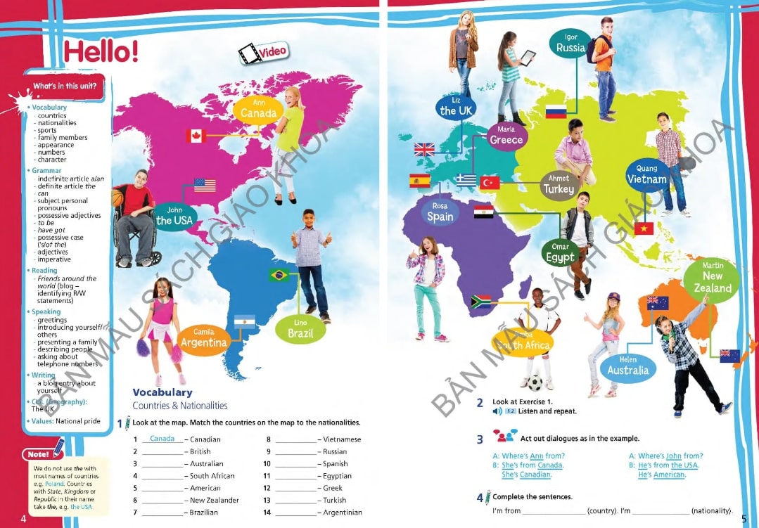 Unit 1 là nền tảng quan trọng trong cả cuốn sách vì đây là bài học giúp học sinh làm quen với cách trình bày thông tin cá nhân. Chủ đề xoay quanh:
