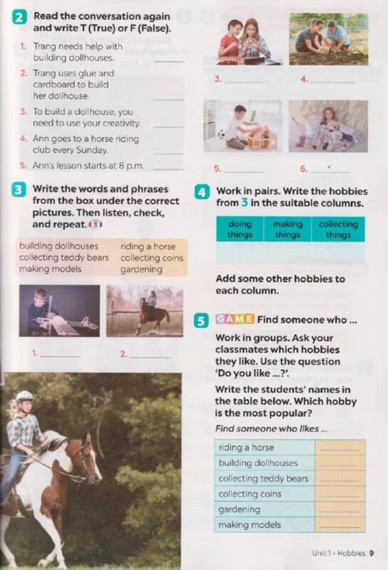 Phần Skills (Kỹ năng): Mỗi bài học đều có 4 kỹ năng chính – Listening, Speaking, Reading, Writing – được lồng ghép tự nhiên qua các hoạt động đa dạng như đóng vai, thảo luận, đọc hiểu văn bản ngắn hay viết đoạn văn miêu tả.