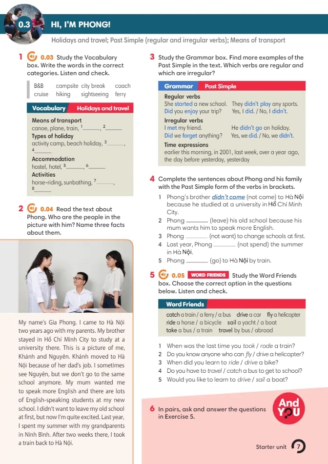 Thực hành giao tiếp: Sử dụng các bài tập bổ trợ để luyện nói và nghe, áp dụng từ vựng và cấu trúc đã học.