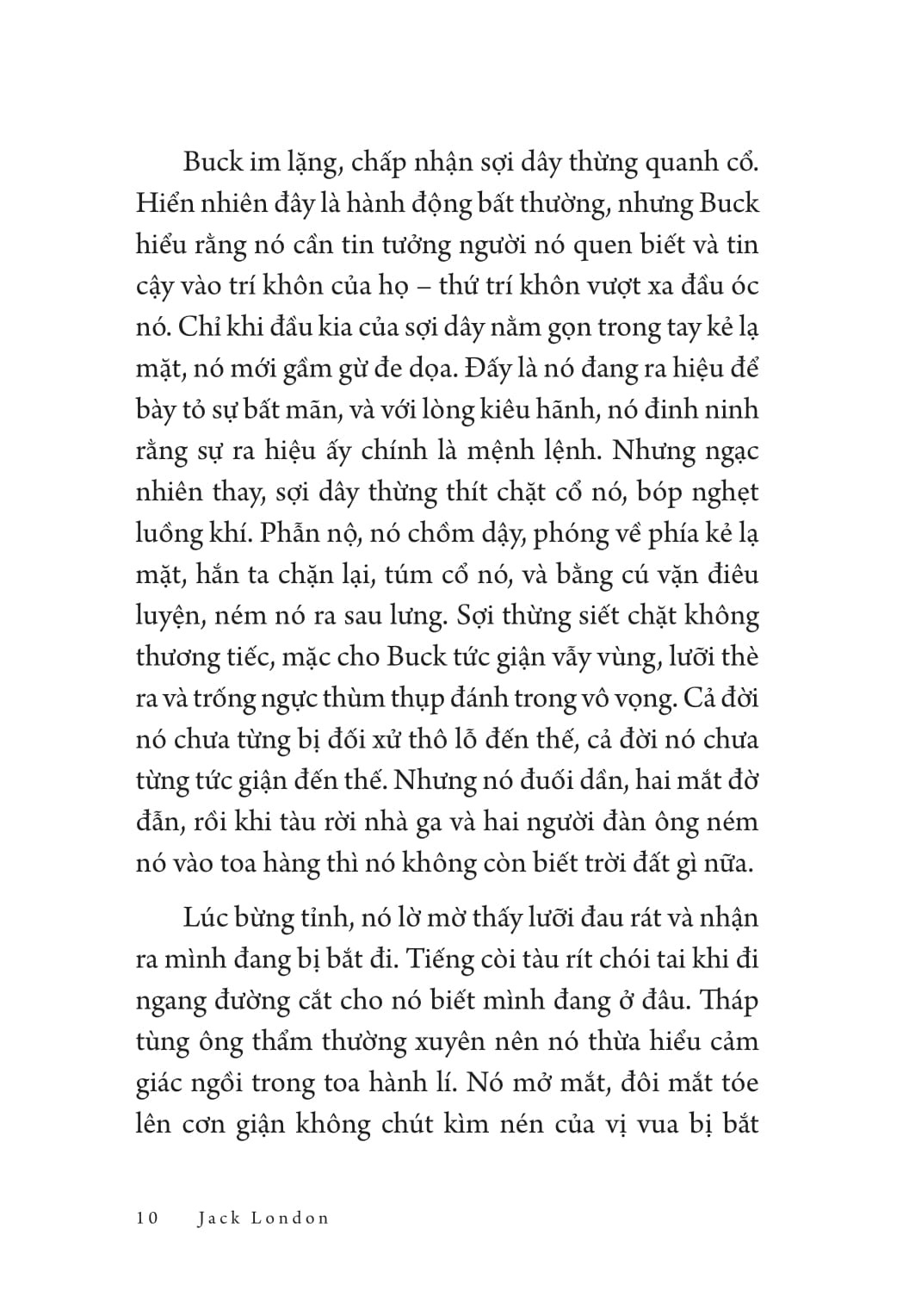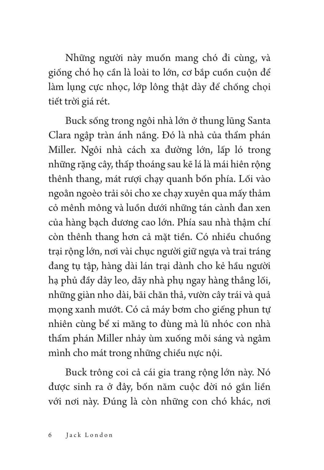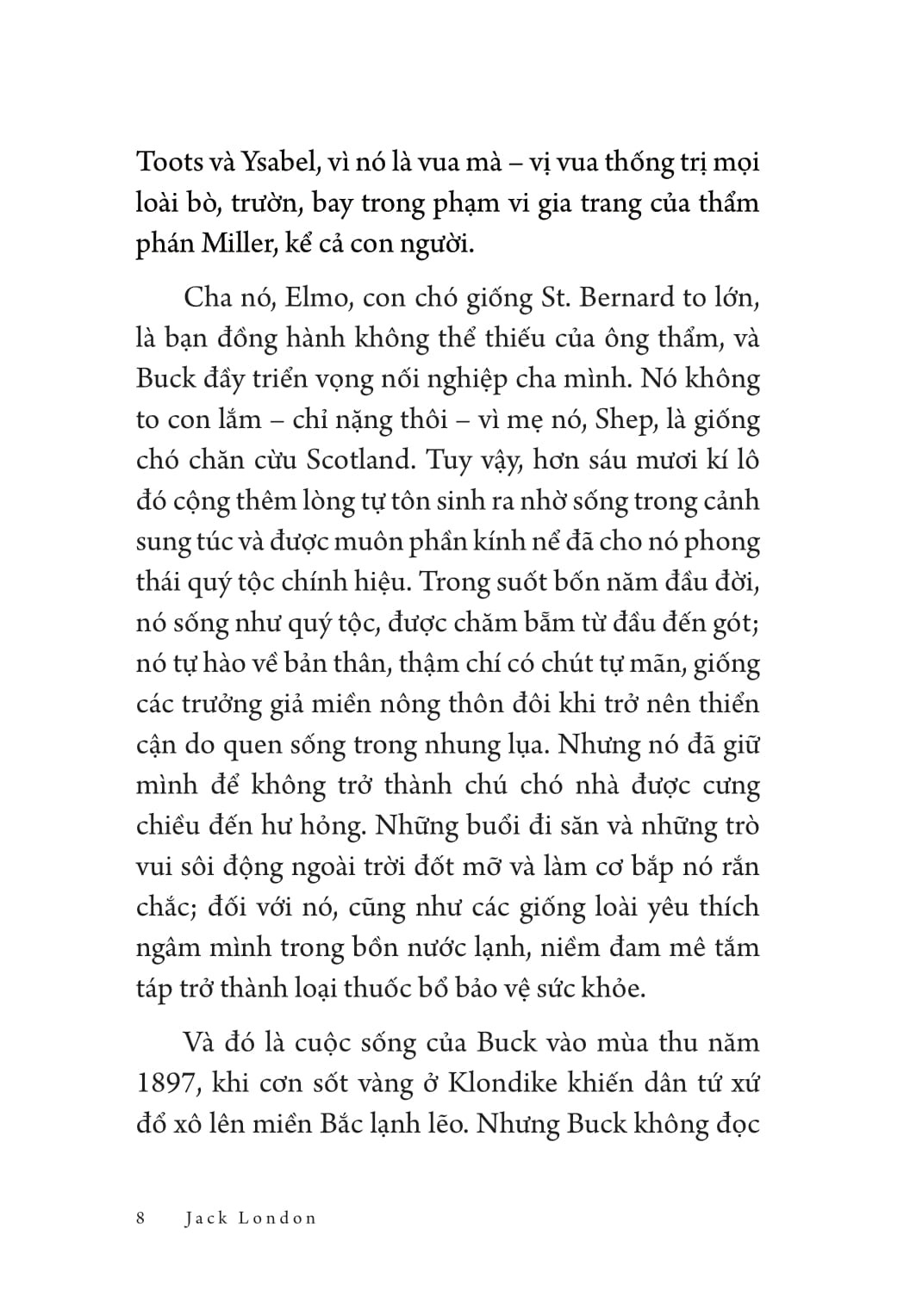 Bằng trải nghiệm vừa dữ dội vừa cảm động, Jack London đã khắc họa rõ rệt sự đối lập giữa tình thương và khát vọng sinh tồn, giữa nhân tính và bản năng. Khi theo dõi hành trình của Buck, bạn sẽ cảm nhận được khát khao tự do, lòng trung thành cùng sự đấu tranh không ngừng để vượt qua định mệnh. Đây không chỉ là một câu chuyện phiêu lưu hấp dẫn, mà còn là một bài học sâu sắc về tình yêu thương, lòng dũng cảm và sự nghiệt ngã của đời sống nơi hoang dã.