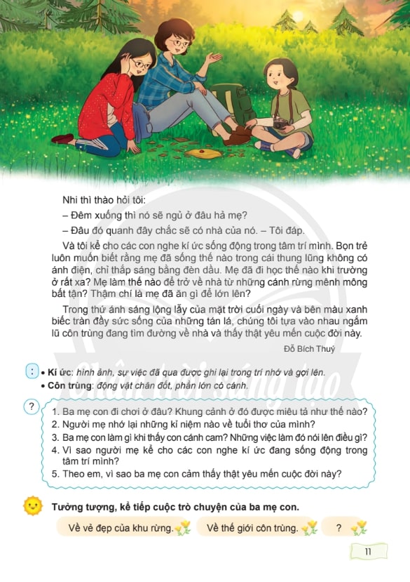 Phần 1: Đọc hiểu – Bao gồm các câu chuyện, truyện ngắn, đoạn văn, thơ với hình ảnh minh họa sinh động.