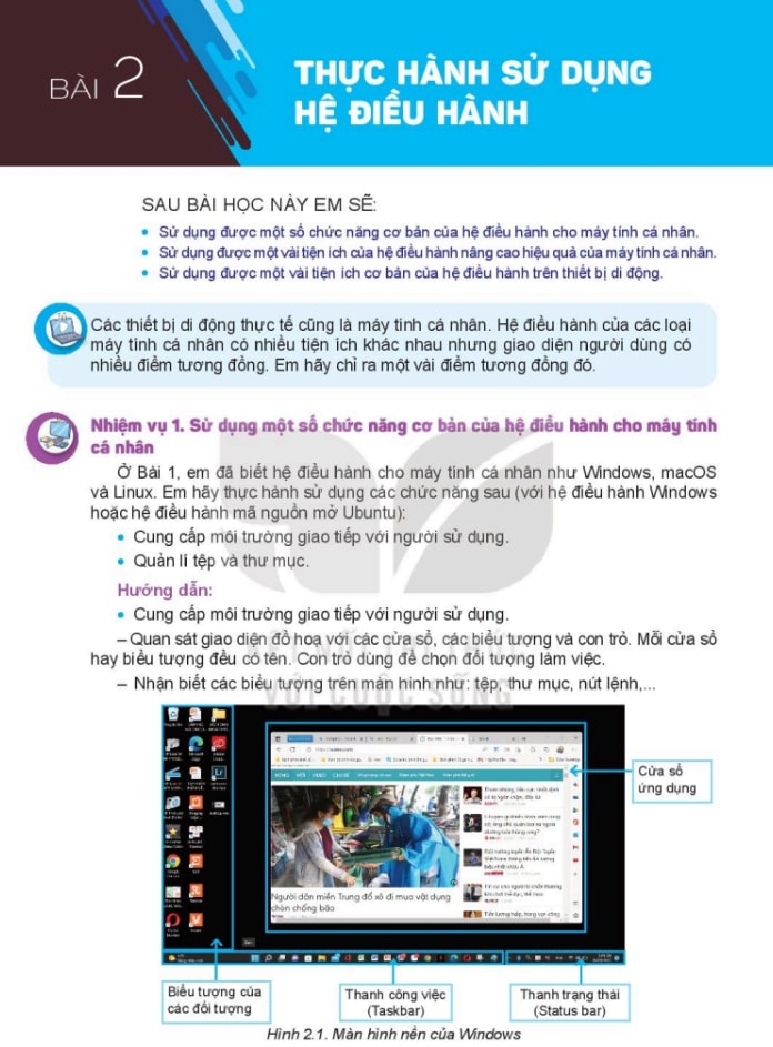Nhận biết các thao tác quản lý tệp tin, thư mục và cài đặt phần mềm.