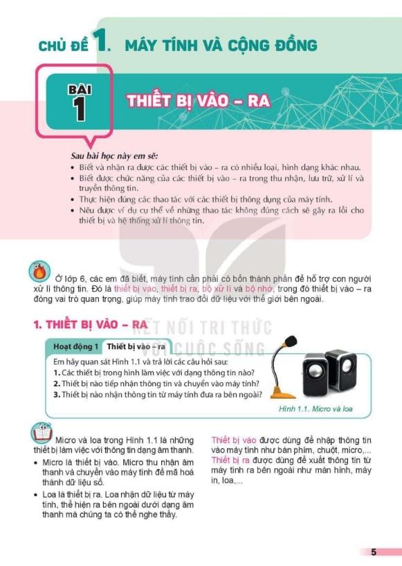Mạng máy tính và Internet: Cung cấp kiến thức về mạng LAN, WAN, các dịch vụ Internet, email, tìm kiếm thông tin trực tuyến và ứng dụng công nghệ thông tin trong học tập. Học sinh còn được hướng dẫn cách khai thác tài nguyên online an toàn và hiệu quả.