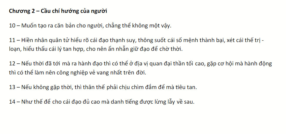 Cách đọc hiệu quả nhất là đọc chậm, mỗi lần chỉ tiếp nhận một vài mệnh đề. Sau khi đọc, người học cần dừng lại để suy ngẫm, đối chiếu với thực tế công việc, các mối quan hệ hoặc những tình huống đã từng trải qua. Việc đọc lặp lại cùng một đoạn sau một thời gian sẽ giúp người đọc nhận ra những tầng ý nghĩa mới mà trước đó chưa từng thấy.