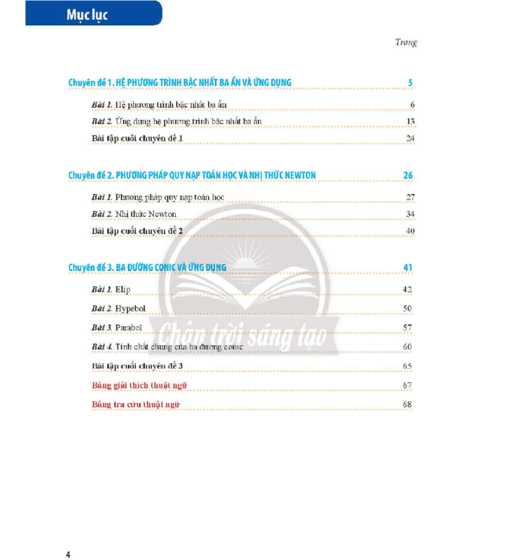 Mục lục Toán 10 Chân Trời Sáng Tạo Tập 2 được biên soạn khoa học, đảm bảo học sinh tiếp cận kiến thức theo lộ trình hợp lý: