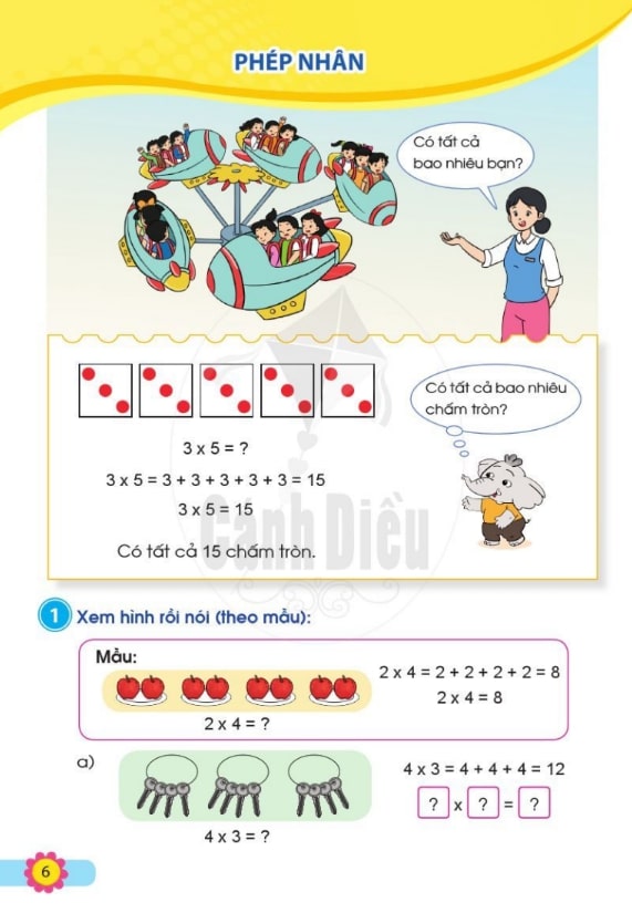 Sách Toán lớp 2 Cánh Diều tập 2 được minh họa với màu sắc tươi sáng, hình ảnh gần gũi và ngộ nghĩnh. Những hình ảnh này không chỉ làm sinh động bài học mà còn giúp trẻ dễ dàng ghi nhớ công thức, số liệu và các bước giải bài.