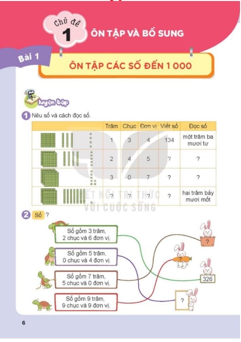 Học sinh được ôn lại các số trong phạm vi 1000, học cách nhận biết và sắp xếp các số theo thứ tự, đồng thời thực hành các phép cộng, trừ, nhân, chia. Những bài tập minh họa sinh động giúp các em hình thành thói quen tư duy logic, rèn luyện kỹ năng giải quyết vấn đề nhanh và chính xác.