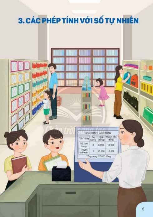 Học sinh sẽ được tiếp cận các phép tính phức tạp hơn so với lớp trước: cộng, trừ, nhân, chia số lớn, phân số và số thập phân. Mỗi bài học đều cung cấp ví dụ minh họa cụ thể, hướng dẫn từng bước giải bài toán. Qua đó, trẻ rèn luyện khả năng tính toán chính xác, tư duy logic và khả năng giải quyết vấn đề nhanh nhạy. Các bài toán thực hành như tính tiền trong siêu thị, tính diện tích đất hay đo lường vật dụng giúp trẻ áp dụng toán học vào đời sống thực tế.