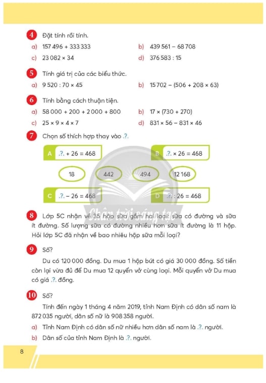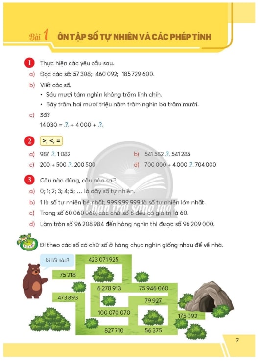 Bắt đầu với các bài học về số tự nhiên, số thập phân và phân số, học sinh sẽ được rèn luyện các kỹ năng cộng, trừ, nhân, chia một cách thành thạo. Toán 5 tập 1 Chân Trời Sáng Tạo PDF cung cấp nhiều dạng bài tập phong phú, từ bài tập cơ bản đến bài tập nâng cao, giúp các em củng cố kiến thức và phát triển tư duy phản xạ nhanh với các con số. Các phương pháp giải bài tập cũng được hướng dẫn chi tiết, giúp học sinh tự tin khi giải toán tại lớp hay tại nhà.