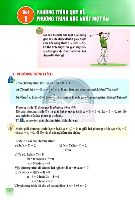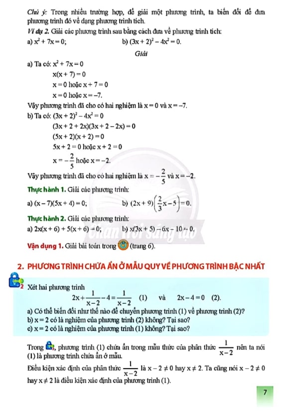 Ví dụ, bài tập đầu tiên trang 9 yêu cầu giải các phương trình dạng A⋅B=0A \cdot B = 0. Việc luyện tập kỹ phần này giúp học sinh làm chủ các dạng bài nâng cao về sau.