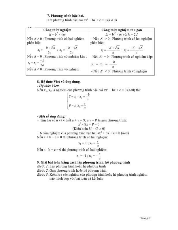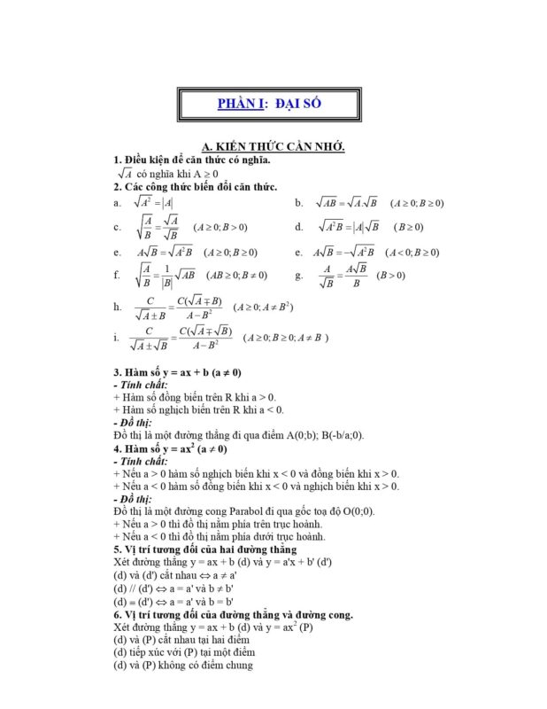 Tổng hợp kiến thức Toán 9 kì 1 cần ghi nhớ