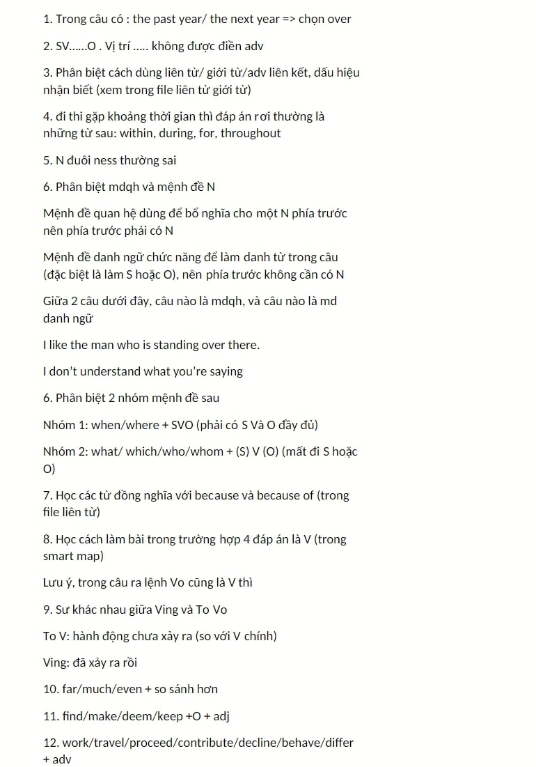 Dưới đây là tổng hợp các chủ điểm ngữ pháp trọng tâm xuất hiện trong các đề thi TOEIC.