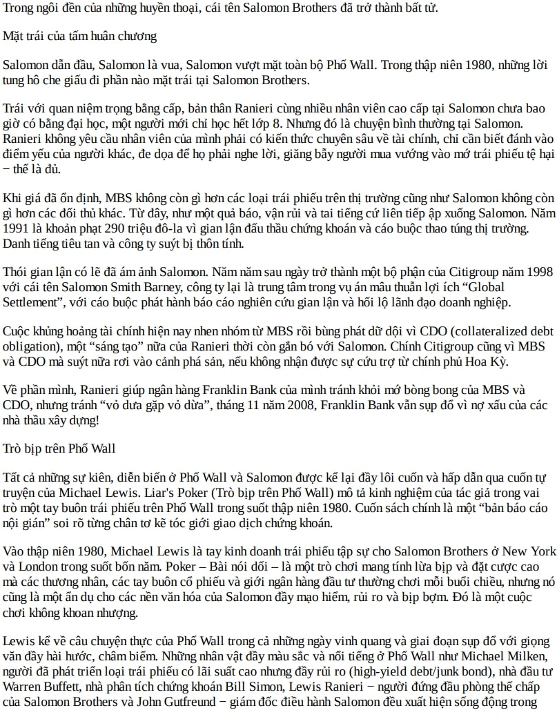 Salomon Brothers trong mắt Lewis là nơi mà tài năng và lòng tham luôn song hành. Cuốn sách mô tả chi tiết: