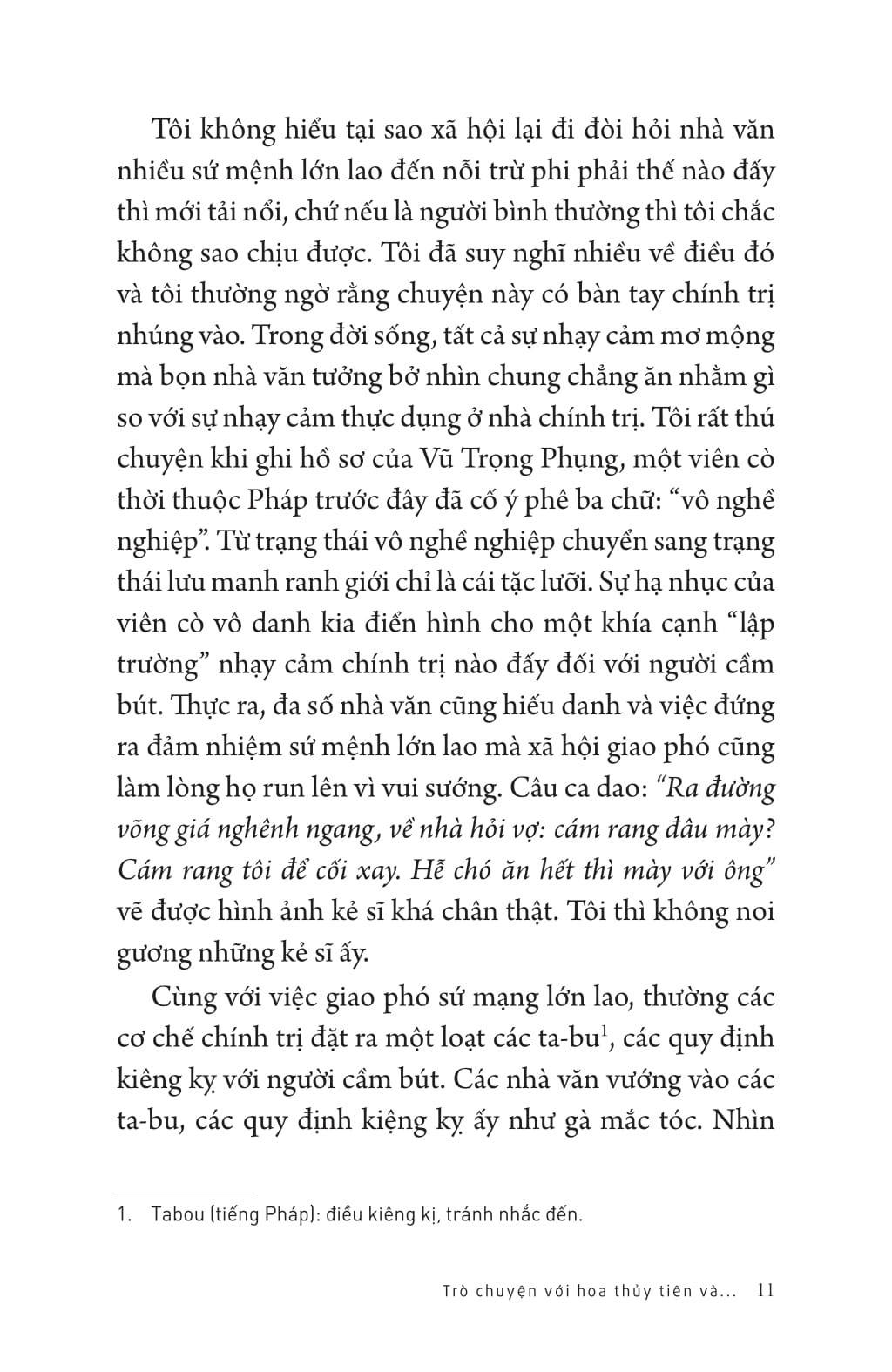 Với những ai yêu văn học Việt Nam hiện đại, Trò Chuyện Với Hoa Thủy Tiên Và… là cuốn sách không thể bỏ qua. Nó không chỉ là tuyển tập tiểu luận – phê bình, mà còn là hành trình khám phá tư duy nghệ thuật, phản ánh sự gắn bó mật thiết giữa văn chương và đời sống.
