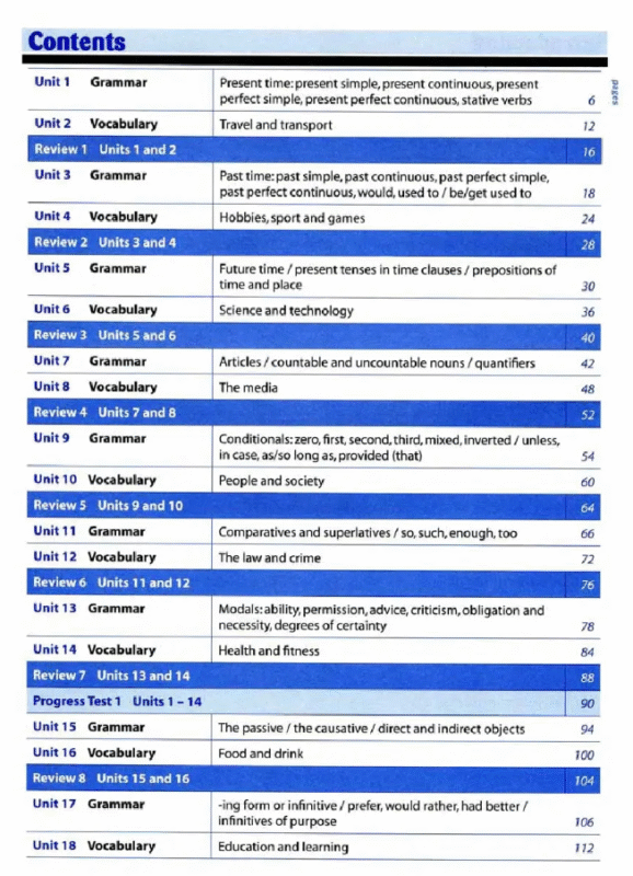 Bài học ngắn gọn – nội dung sâu sắc: Mỗi unit chỉ gói gọn trong vài trang nhưng khai thác đầy đủ các cấu trúc quan trọng, ví dụ: Conditionals, Reported Speech, Modals, Phrasal Verbs…