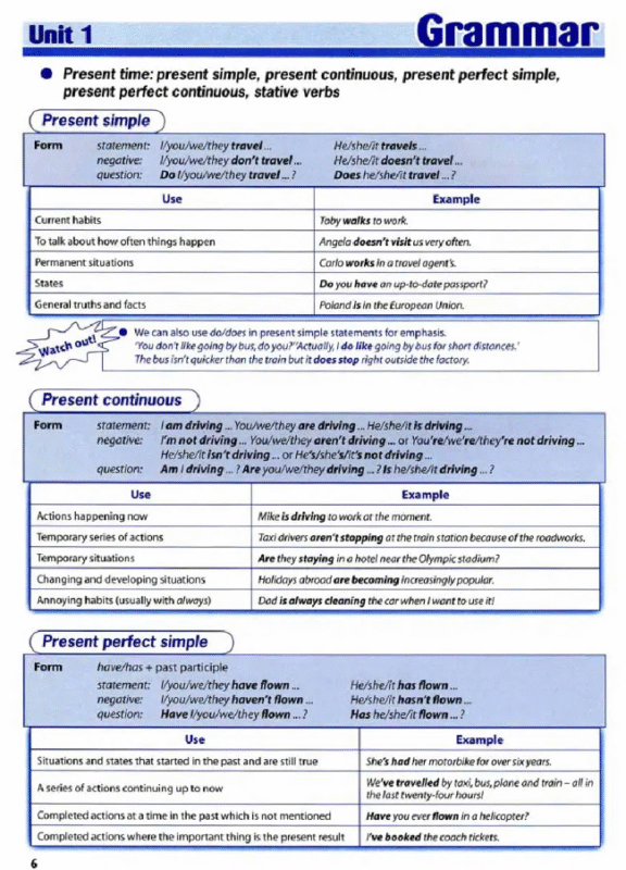 Điều đặc biệt khiến Destination B1 và B2 được yêu thích suốt nhiều năm nằm ở cách trình bày rõ ràng, dễ hiểu và có hệ thống. Mỗi bài học đều kết hợp giữa phần Grammar (ngữ pháp) và Vocabulary (từ vựng) theo từng chủ đề cụ thể, giúp bạn học đến đâu là nhớ đến đó.