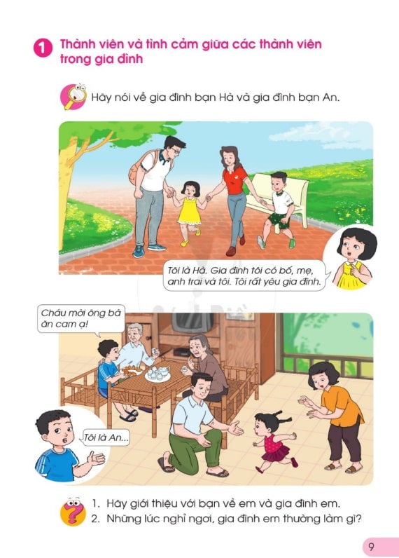 Hình ảnh minh họa trong sách còn đi kèm các câu hỏi gợi mở, ví dụ: “Bạn có nhận thấy những loài cây nào quanh nhà mình không?” hay “Bạn có thể kể tên một số loài động vật sống gần trường em?”. Những câu hỏi này giúp trẻ vận dụng kiến thức vào đời sống thực tế, đồng thời rèn luyện kỹ năng giao tiếp và tư duy phản biện.