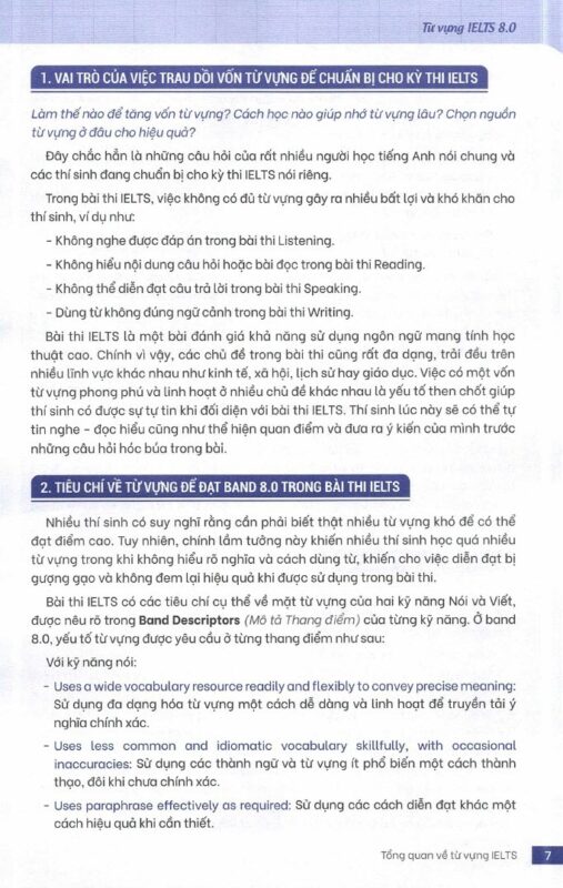 Tải Sách Từ Vựng IELTS 8.0 – Từ Vựng Đắt Để Đạt Điểm Cao 4 Kỹ Năng PDF Miễn Phí