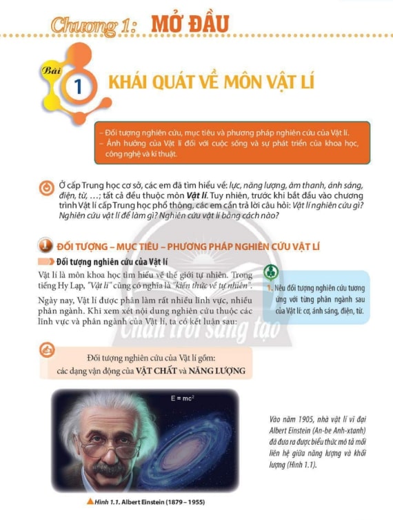 1. Nội dung trọng tâm của Vật lí 10 Chân trời sáng tạo Bài 1