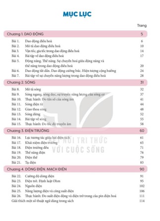 Bộ Vật Lí 11 Kết Nối Tri Thức được chia thành nhiều chương tương ứng với các mảng kiến thức trọng tâm như: Dao động, Sóng, Điện học, Từ trường và Ứng dụng của điện từ trong thực tiễn. Mỗi chương đều có ba phần mạch lạc: