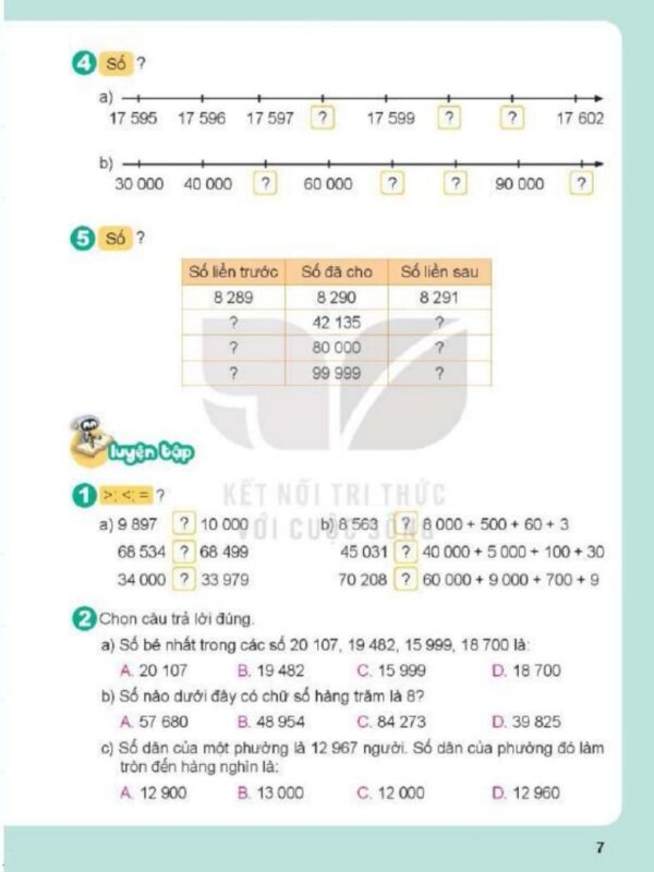 Vở Bài Tập Toán Lớp 4 Kết Nối Tri Thức là tài liệu học tập quan trọng giúp học sinh lớp 4 rèn luyện kỹ năng làm toán và củng cố kiến thức theo chương trình giáo khoa mới. Sách được biên soạn bám sát nội dung SGK Toán 4 Kết Nối Tri Thức với Cuộc Sống, với hệ thống bài tập đa dạng, từ cơ bản đến nâng cao, giúp học sinh phát triển tư duy logic, khả năng tính toán và vận dụng kiến thức vào thực tế.